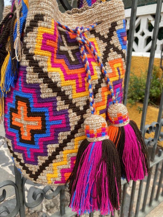 Los bolsos o las mochilas Wayúu, son una de las artesanías de Colombia más reconocidas en el mundo. Son elaborados por las mujeres Wayúu en la Guajira, Colombia, usando la técnica de crochet o ganchillo.